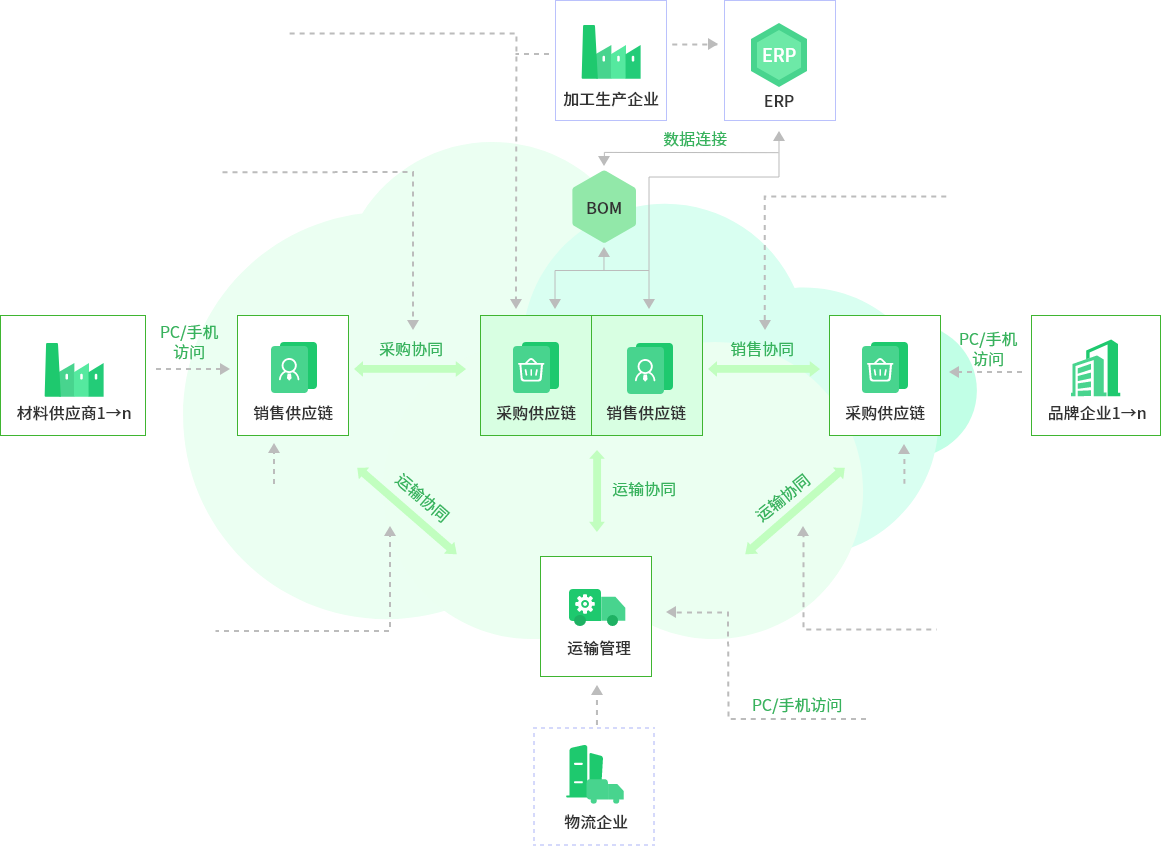 加工生产企业采购与销售生态协同应用拓扑图